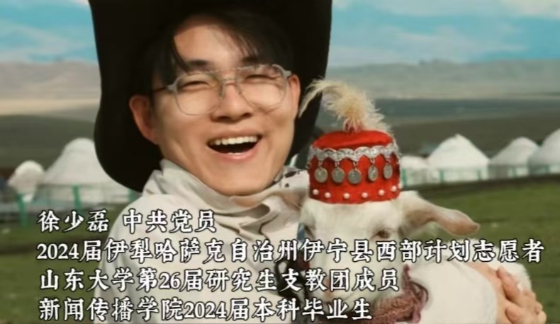 砥砺奋进七十年 天山南北谱华章 青春向西 边疆筑梦 徐少磊,山东大学新闻传播学院2020级本科生,2025级研究生,中共党员,山东大学第26届研究生支教团成员。本科期间曾任班长、新闻传播学院学生会执行主席、校团委兼职团干部等职务,曾获山东大学优秀班长、山东大学优秀共青团员、山东大学志愿服务先进个人等荣誉。2024年8月至2025年7月赴新疆支教,期间担任高二化学教师、副班主任,教授115名学生。在高质量完成教学任务的同时,策划“山岩讲师团”等品牌活动,打造个人抖音账号... 2025-09-25查看详情